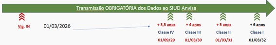 É importante notar que a transmissão desses dados ao Siud já pode ser feita de forma voluntária. A obrigatoriedade, no entanto, será implementada gradualmente, conforme os prazos definidos pela RDC 591/2021 e detalhados na figura abaixo.